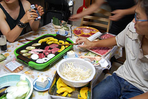 肉を焼き、野菜を焼き・・・そのうちどこからともなく日本酒3本が!