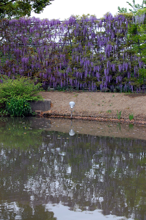 水上花壇とむらさき藤・白藤、そしてクルメツツジ。桃源郷とはこのことか。